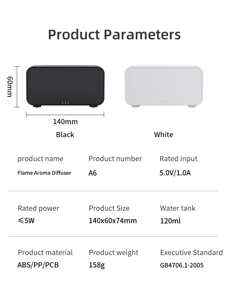 Aroma Humidifier Flame Essential Oil Diffuser Air Humidifier Aromatherapy Fragrance Diffuser with RGB Light Aroma Mist Maker