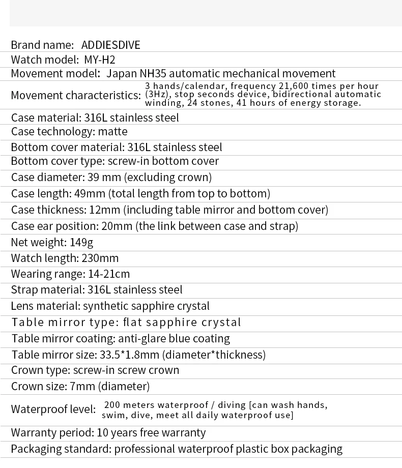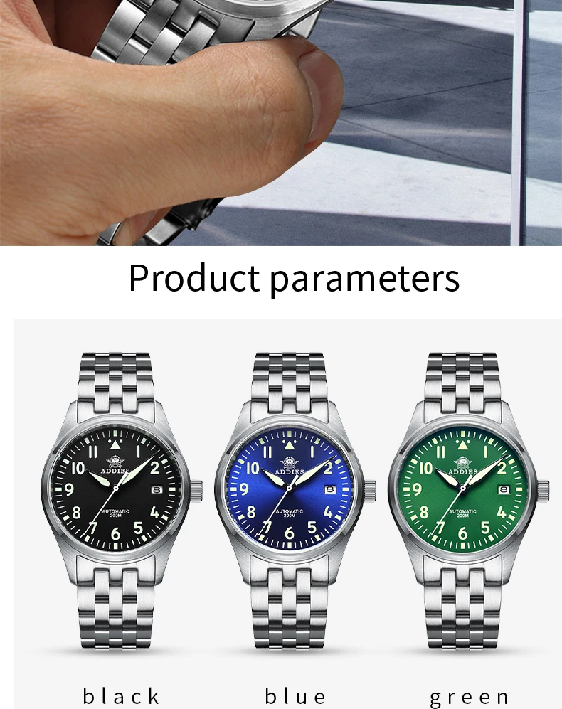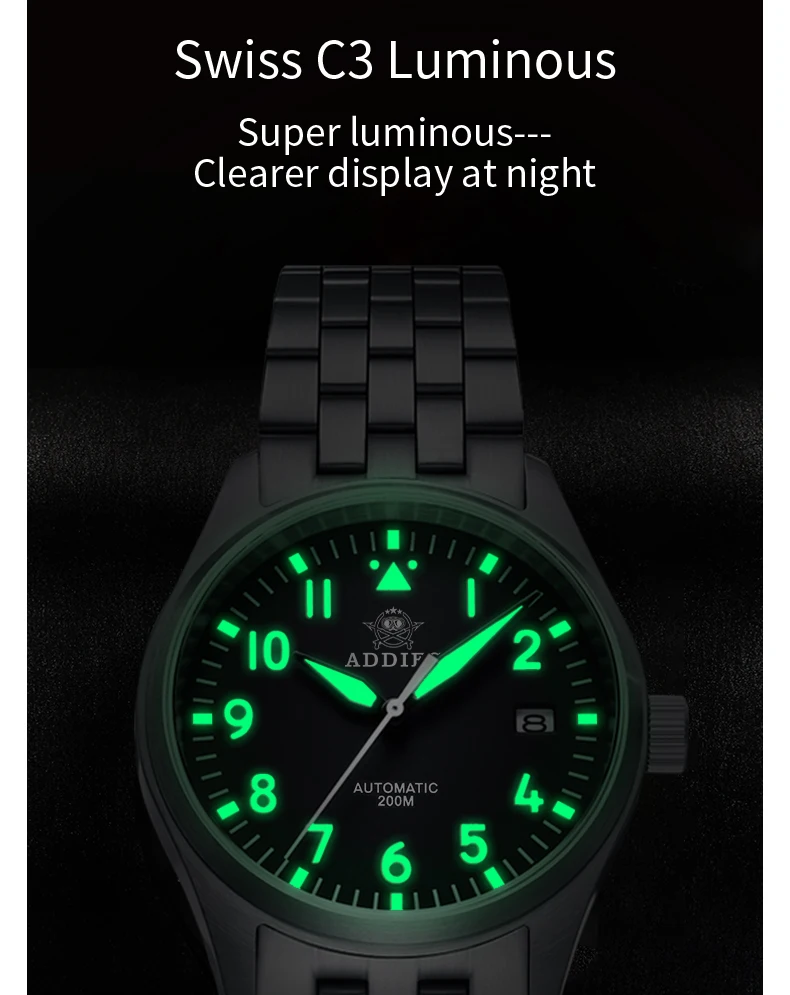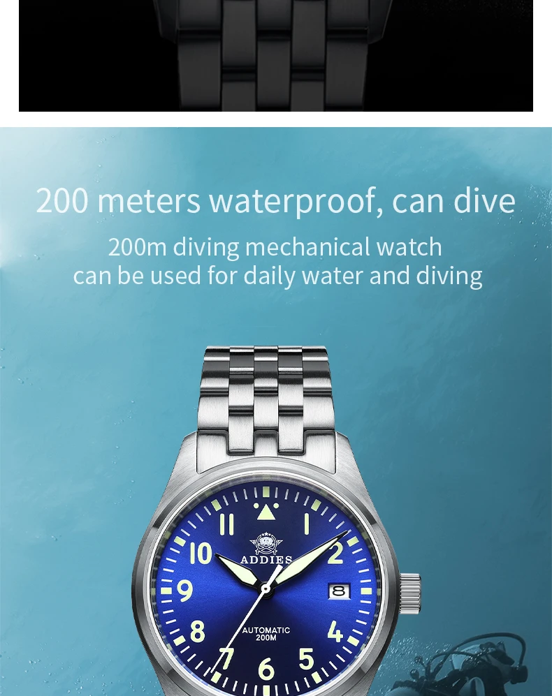 **Dive Into Excellence: The Ultimate Diver's Watch Awaits You** Experience the thrill of underwater exploration with the ADDIESDIVE Automatic Mechanical Diver Watch, crafted for adventure seekers and style enthusiasts alike. This premium watch features a Japan NH35 fully automatic mechanical movement, ensuring precision and reliability for divers and outdoor lovers. With a robust waterproof rating of 200 meters, this watch is designed to withstand your most challenging dives while maintaining a sophisticated look. The sapphire crystal protects against scratches, while the luminous hands and surface bring visibility even in deep waters. Made from durable 316L stainless steel, this timepiece offers not just style but also strength. Whether you're diving, swimming, or simply on the go, the ADDIESDIVE Diver Watch is the perfect fit for your lifestyle and helps you conquer your adventures without compromising on elegance. With a 3-year warranty and packaged in a professional waterproof box, it ensures your investment is safeguarded. Dive into the thrill with ADDIESDIVE – your adventure partner awaits!