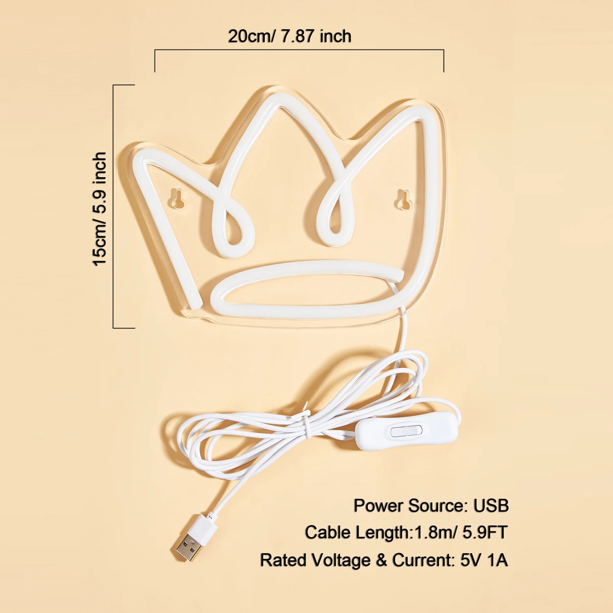 Chi-buy LED neon sign Crown are bent into shapes by high-quality LED light strips. It emits a brilliant light at night, adding an artistic Art to your environment. The CHI-BUY Crown neon sign is powered by a 5V USB, You can turn on the LED neon sign anytime and anywhere, use mobile phone charger, or a computer USB port. The hanging hole design on the lovely colorful Crown night light is very easy to hang. It is the perfect decoration for your bedroom, room, living room, office and shop walls. The LED Crown lamp lighting soft and not dazzling, it is very suitable for use as a night light. The unique Crown shape and exquisite gift design are perfect gifts for your family, friends, girl friends, kids, children, girls on Christmas, Valentine's Day, New Year, birthday, wedding, party and other holidays.