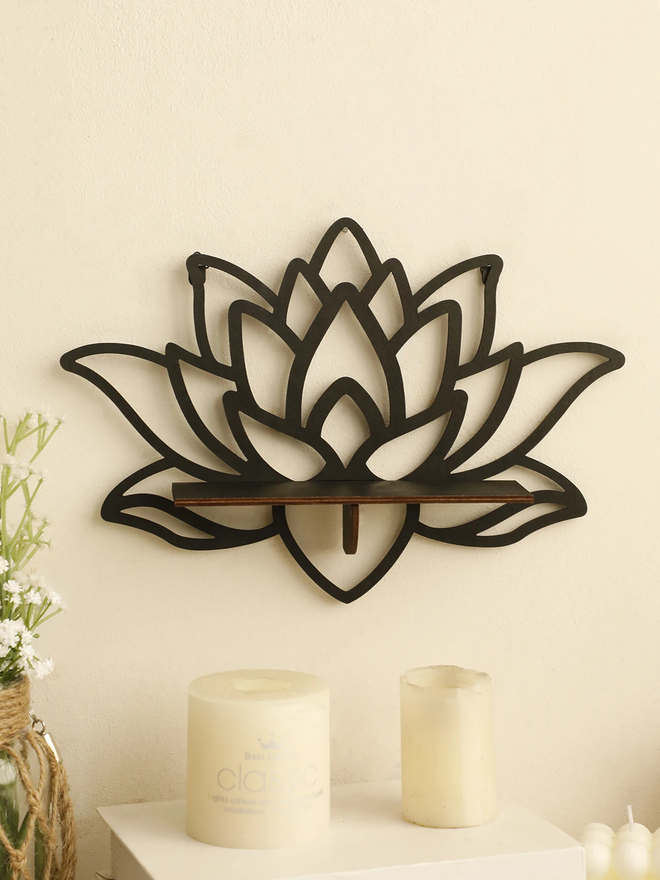 Floating Lotus Wall Shelf | Crystal Shelf Display | Wood Decor | Aesthetic Room Decoration | Modern Home Decoration Shelf